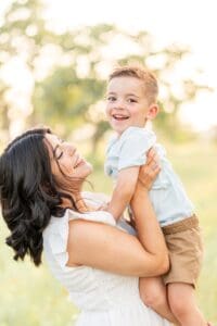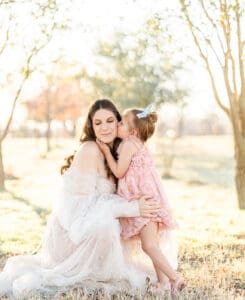 Subtle textures (like linen, knits, or delicate florals) add interest without distraction. Avoid neon colors, bold stripes, or large plaids — they can take attention away from your family’s connection.
